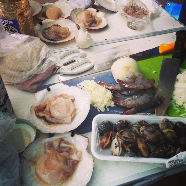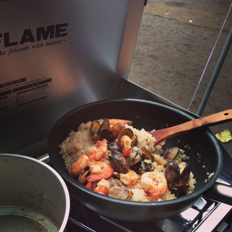 オトナチームは、主にヨメさんズが火のまわりで飲んだくれ。