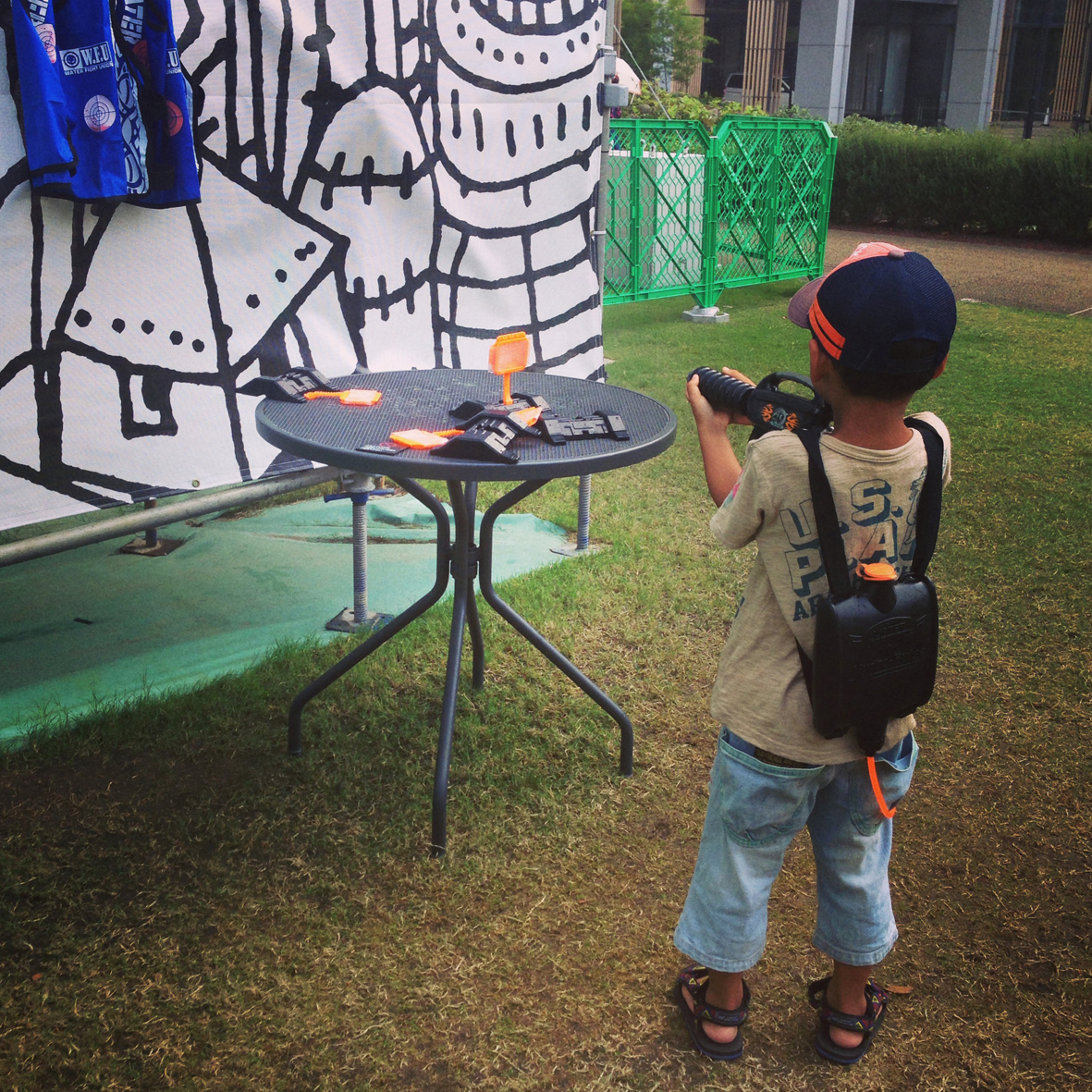 息子はもっぱら、子供プールの滝の下でただひたすら潜り泳ぎ。