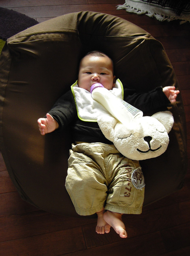 ママの膝の上で爆睡のアレン氏。