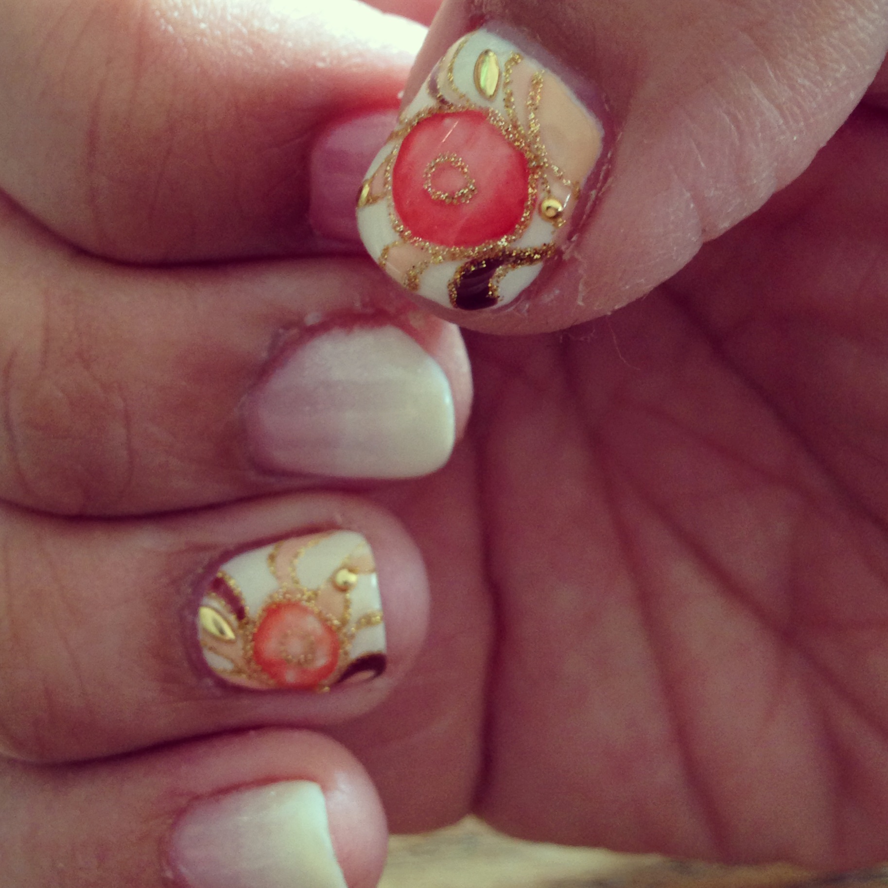 せめて爪先だけでも綺麗にお化粧してもらって、少しでもお見苦しさ軽減を。