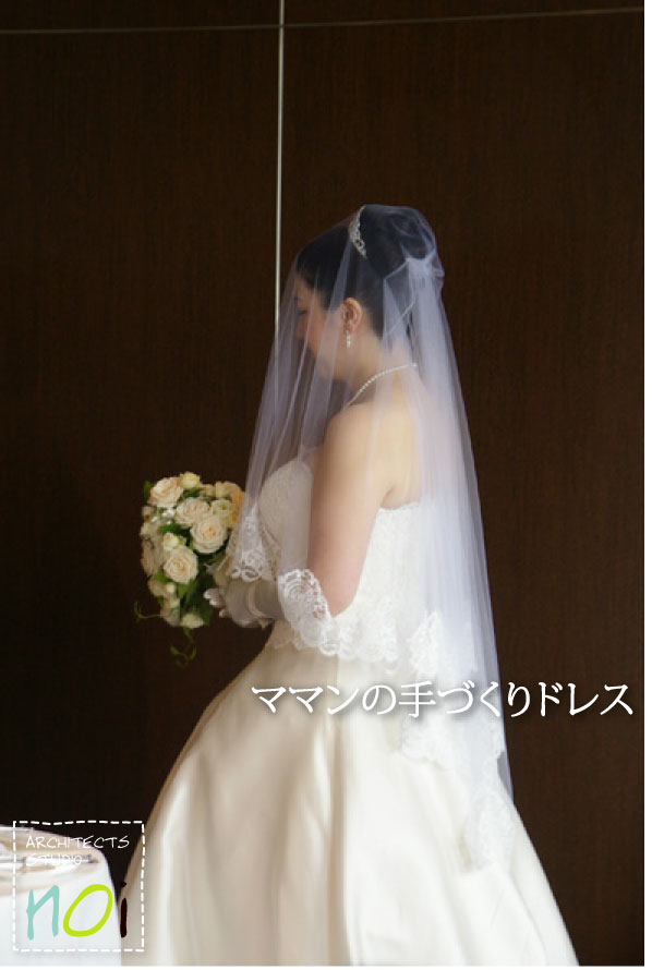 そして新婦さんのウェディングドレスは、お母様手づくり。