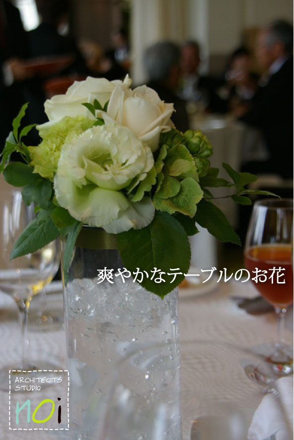 テーブルの上にも爽やかなお花が載って、涼しげに演出してくれていました。