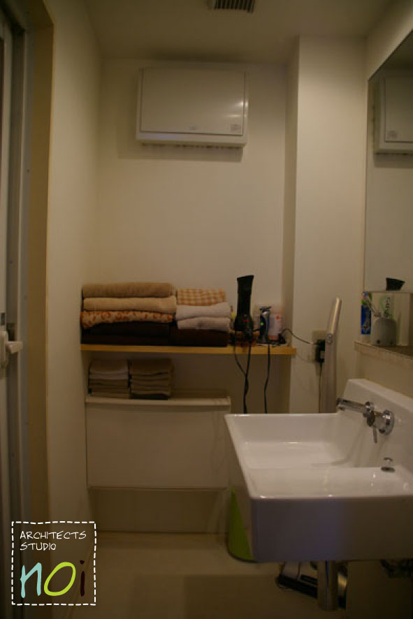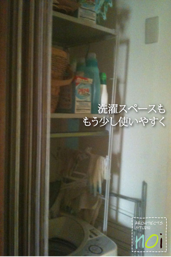 ありあわせだった無印の棚を使っていた洗濯機置場。