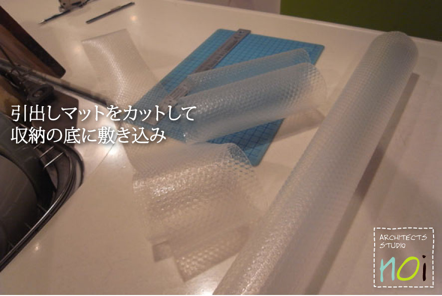 で、買ってきた引出しマットをカッターで引出しの大きさにカットして、