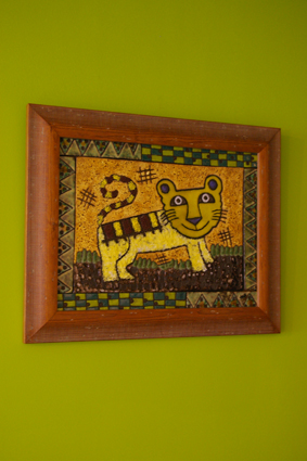 友人であるタイルアート作家の船戸あや子氏の作品たちも展示される、