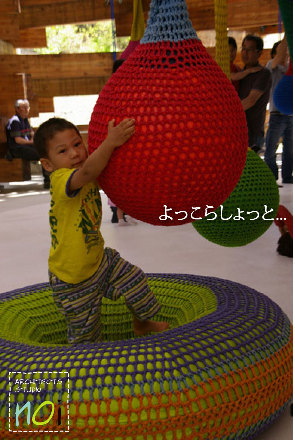 ごろごろ、すっぽり。裸足で遊べて楽しそうでした。