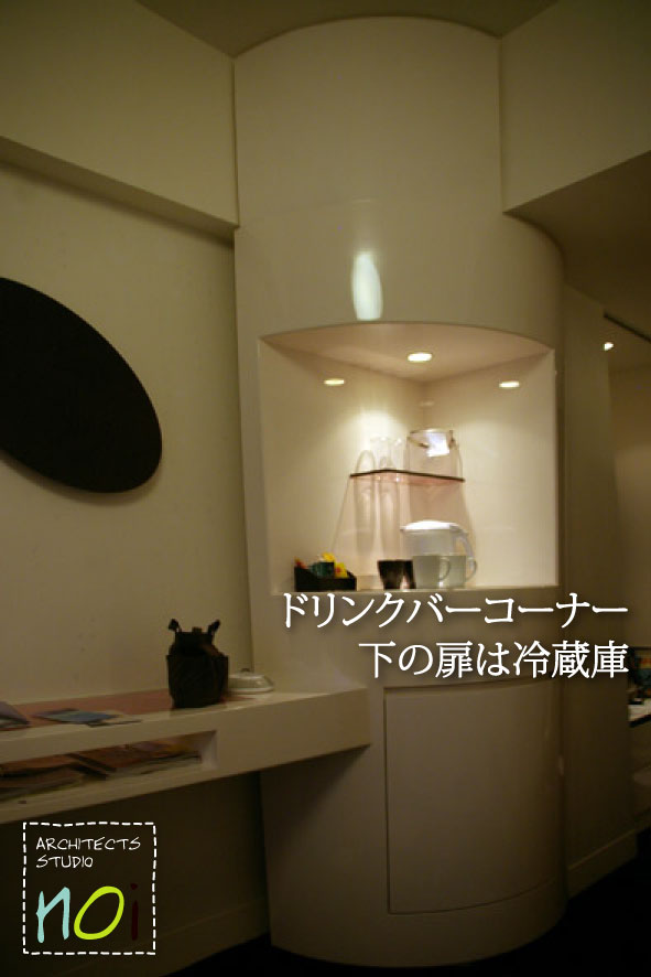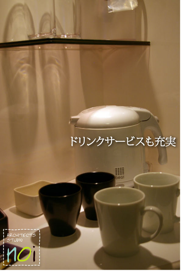 こんなR型のドリンクバーコーナー。