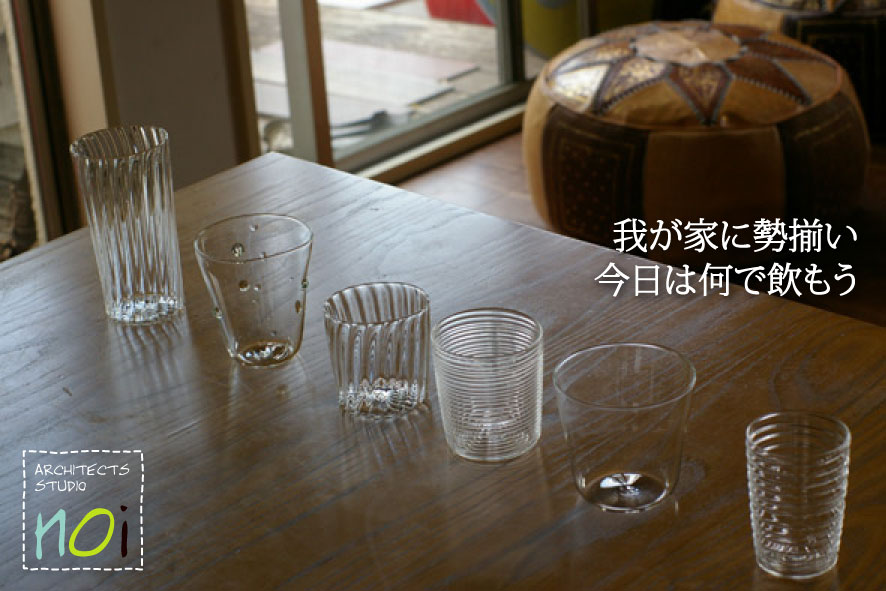 6個のガラスのコップたち。