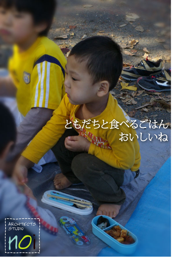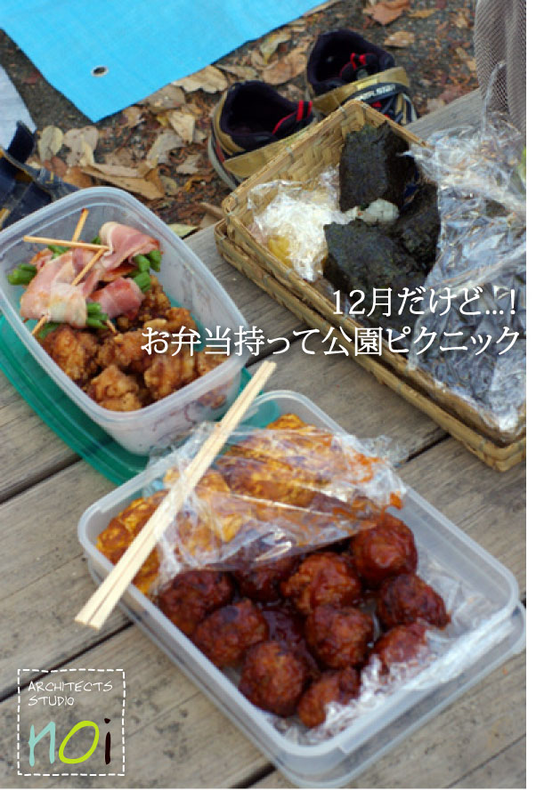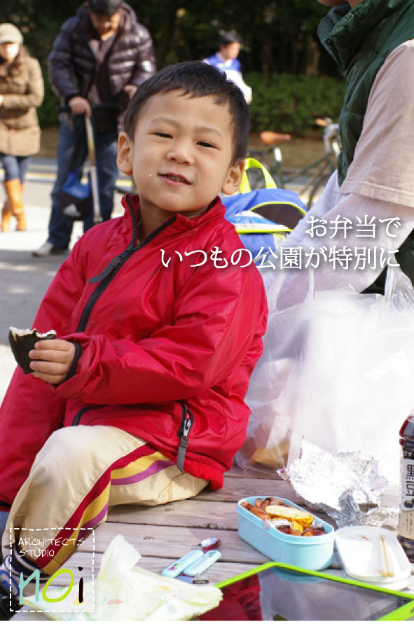 保育園仲間たちと一緒に、近所の公園でお弁当。