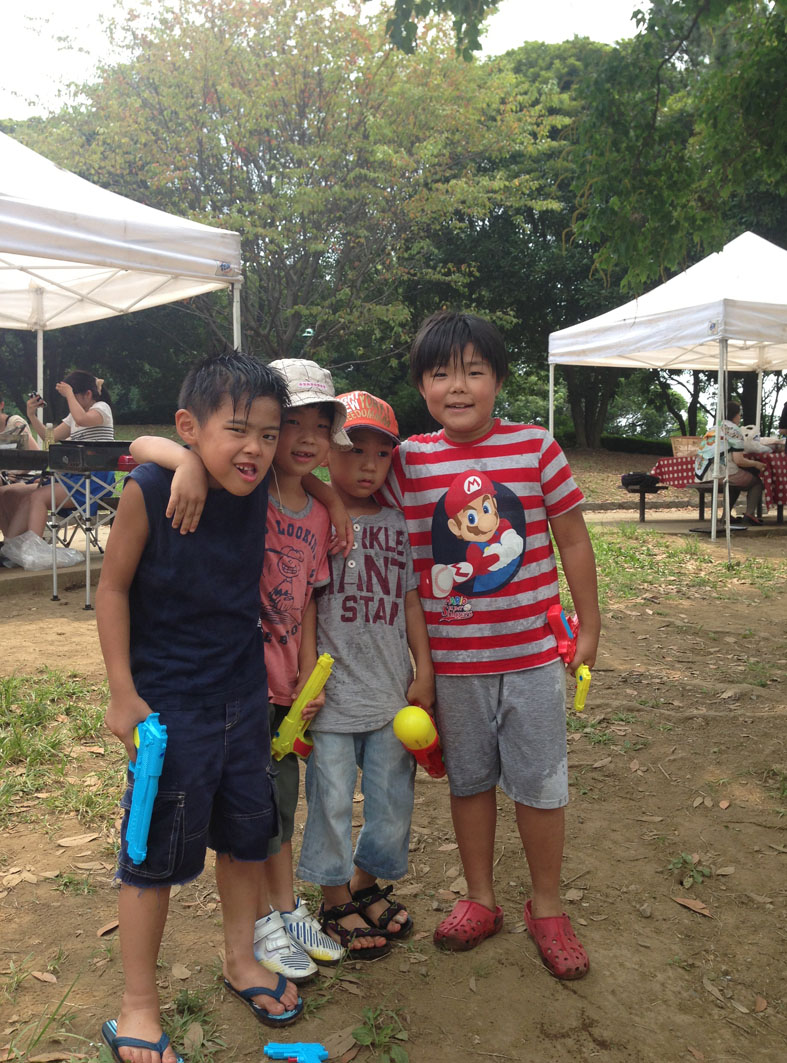 やんちゃ坊主が集まって、水鉄砲で大はしゃぎ。