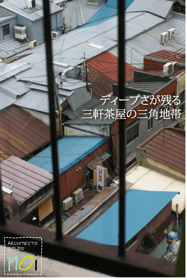三角地帯のつぎはぎだらけのトタン屋根が見下ろせます。