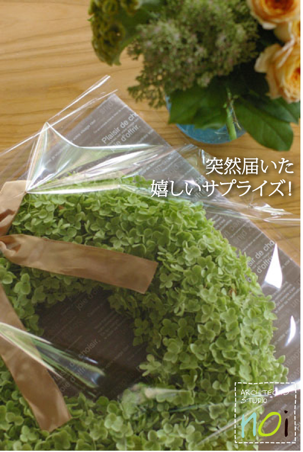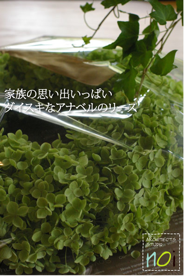 お店の扉の横でお客様を迎えてくれたものと同じ、アナベルのリース。