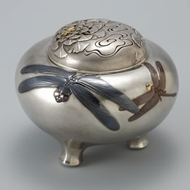 後ろのガラスモザイクや紫の棚とのコントラストがきいてます。