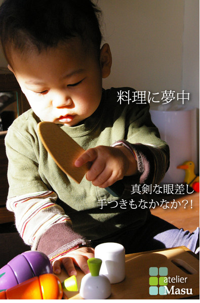 つくることの真似や食べる真似をしながらとても楽しんで遊んでいます。