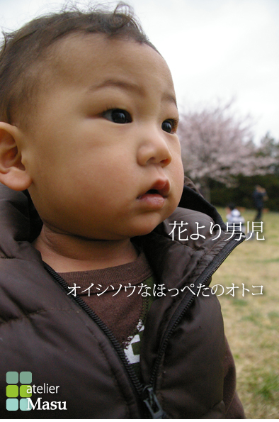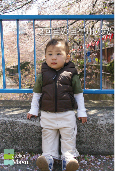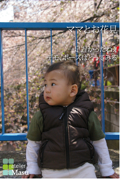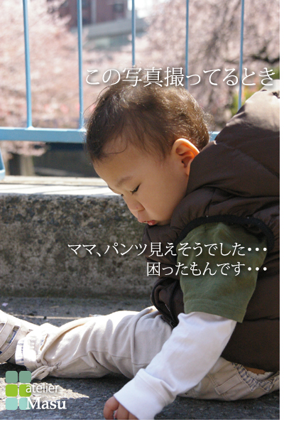 でも天気もよくて気持ちがよかったので、桜を背景に息子を何枚か撮影。