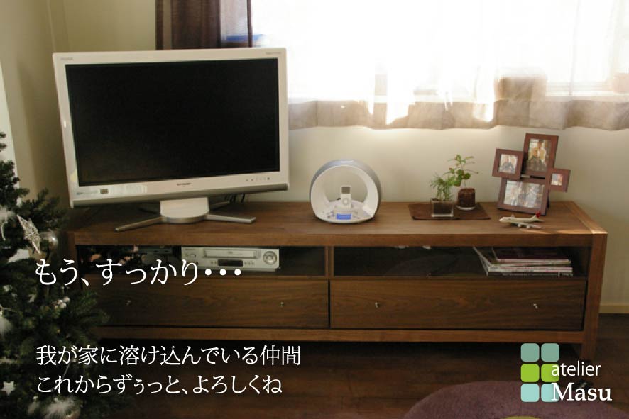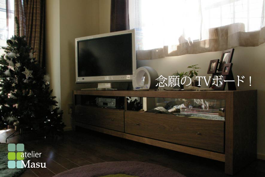 でも、それを置くTVボードはなかなかどれにするか決まらず、また予算も回らず。