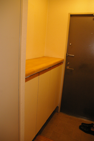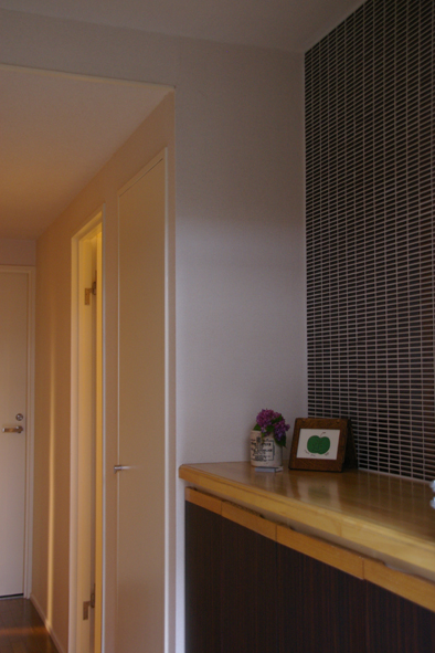 壁・床のタイル張替えはしたものの、下足入はそのまま生かし、