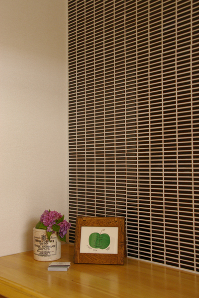 ボルドー色の簾形状のモザイクタイル。