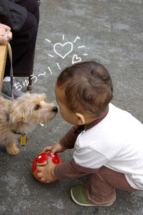 例の如く犬に向かっていくオトコ。
