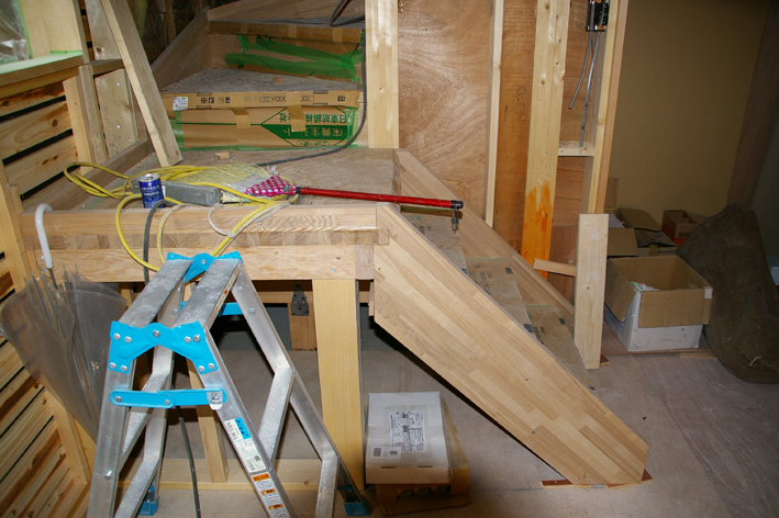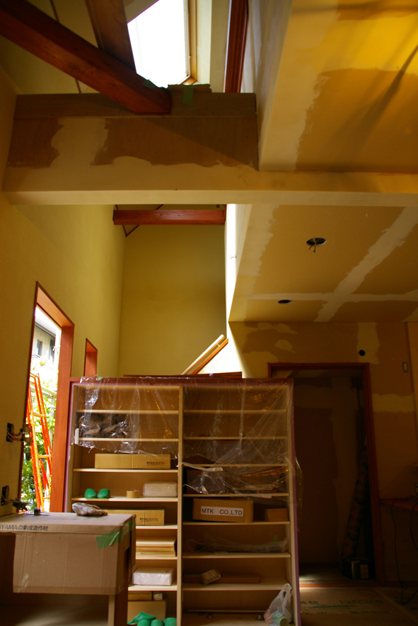反対側を見ると、右手トップライト下の部分の床が増設されています。
