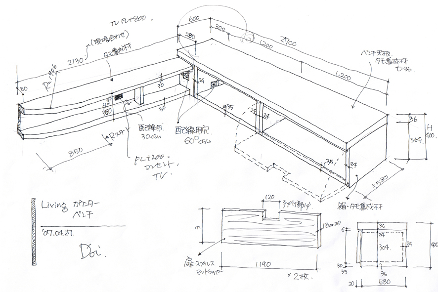 柱の足下に、テーブルの高さのカウンターもつきました。