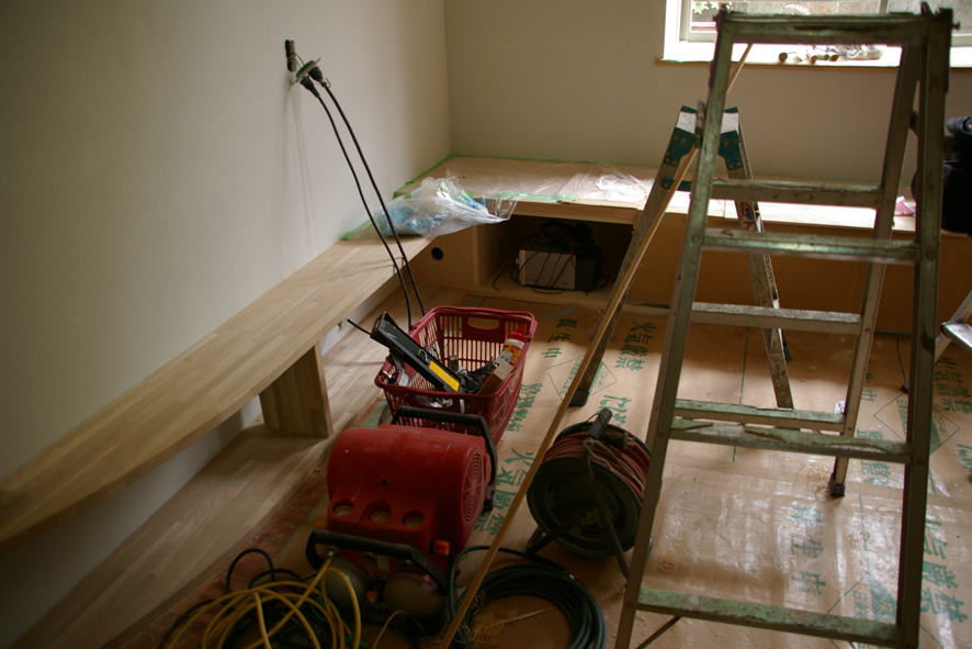 →ボードが貼られて新しい障子の枠も入りました。