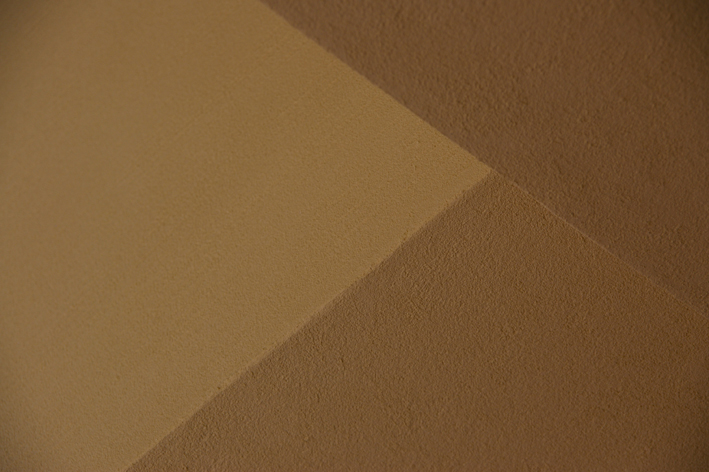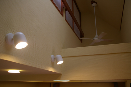 スポットライトで珪藻土の壁が照らし出されています。