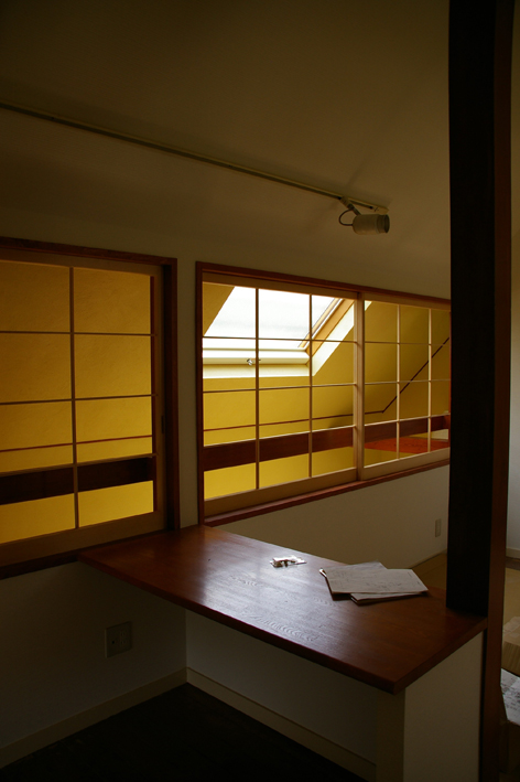 障子を開けると吹き抜け越しに下の階の気配が伝わってきます。