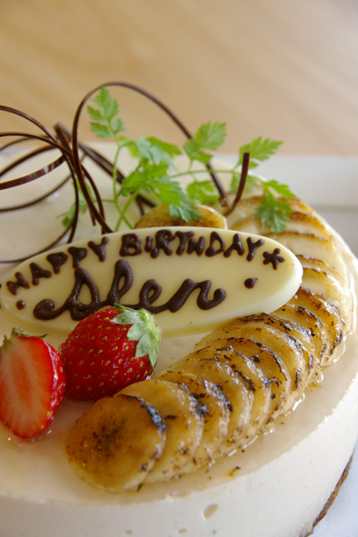 上にはバーナーでこんがり色のバナナとかわいいイチゴ。