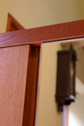 この鏡を貼った扉とそれ以外の扉の面が揃ってるところも、