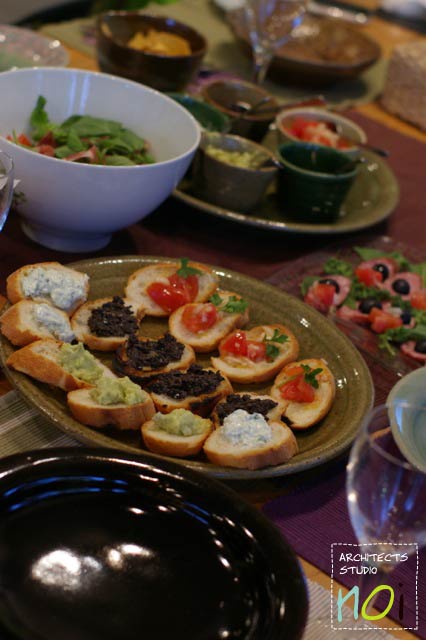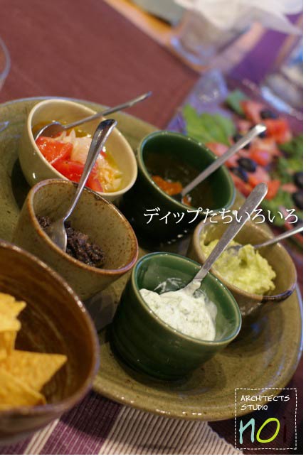 諸々ディップ類を用意してカナッペに。