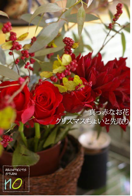 お花も、こっくりとした赤色で。