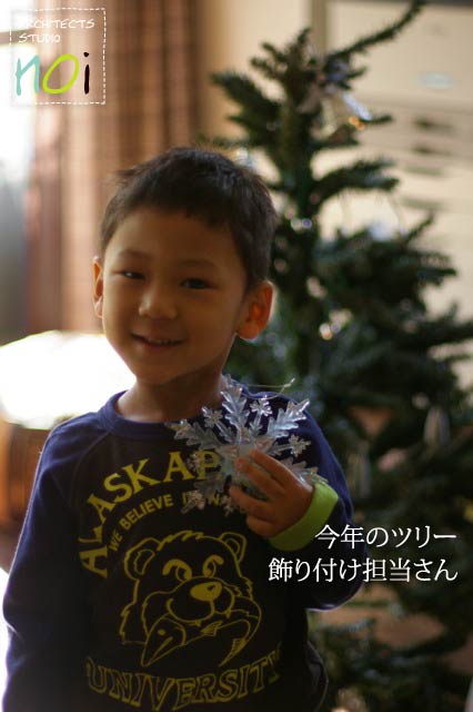 オトコたちはクリスマスツリーの飾り付けに取りかかりました。