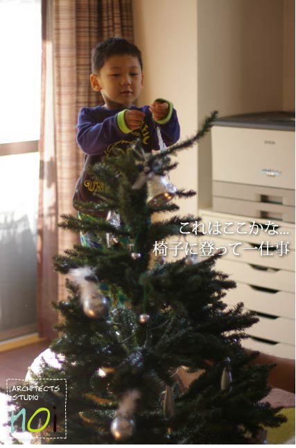 頑張ってオーナメントをまんべんなく取り付けてくれました。