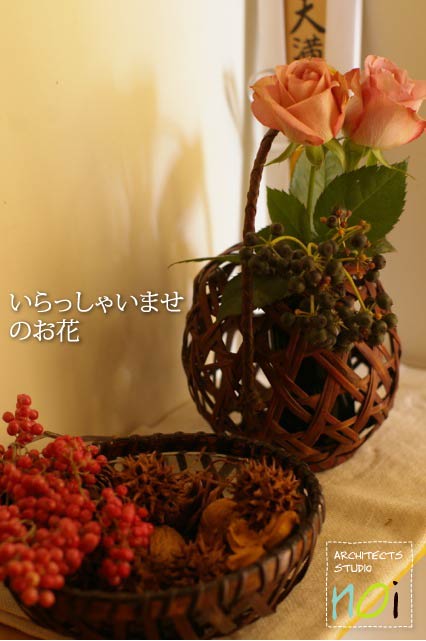 お玄関でお客様をお迎えするお花から。