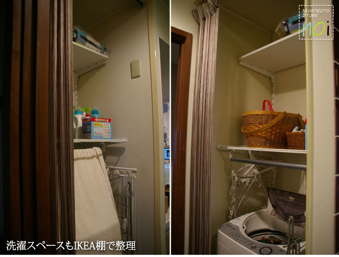 ありあわせだった無印の棚を使っていた洗濯機置場。
