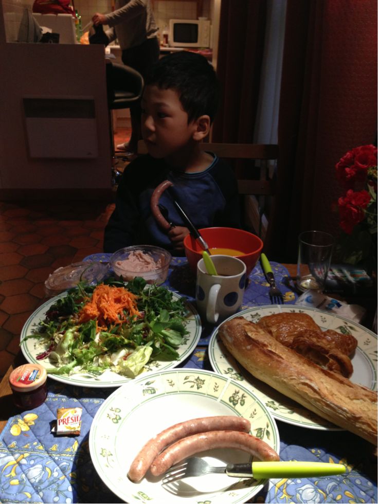 野菜サラダ2種類とグラタンとチキン定食13€と、