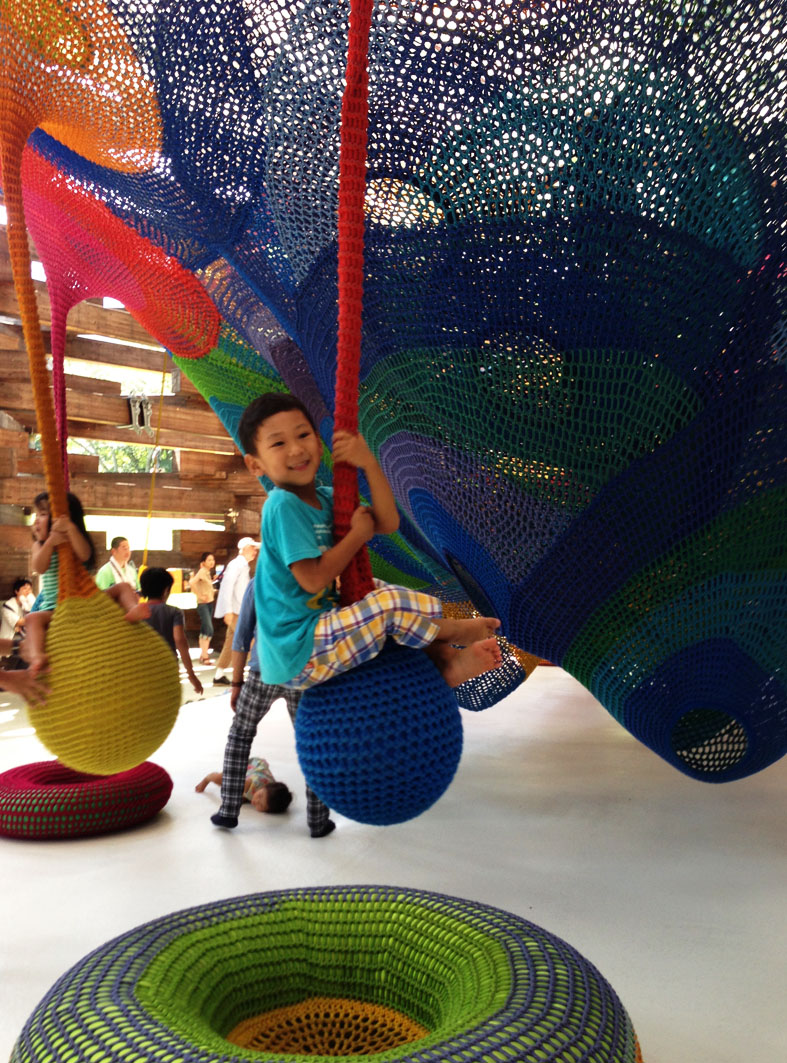 そしてここでお気に入りの、カラフルなネットの森へ。